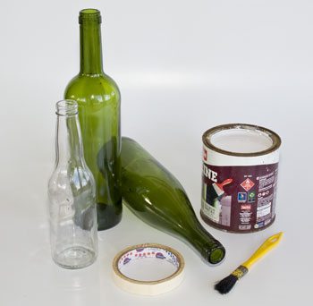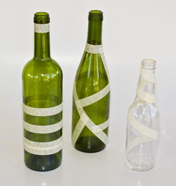 Não espere a tinta secar totalmente para tirar a fita crepe. Com a tinta ainda úmida, retire cuidadosamente. Após tirar, deixe suas garrafas terminarem de secar em lugar ventilado.